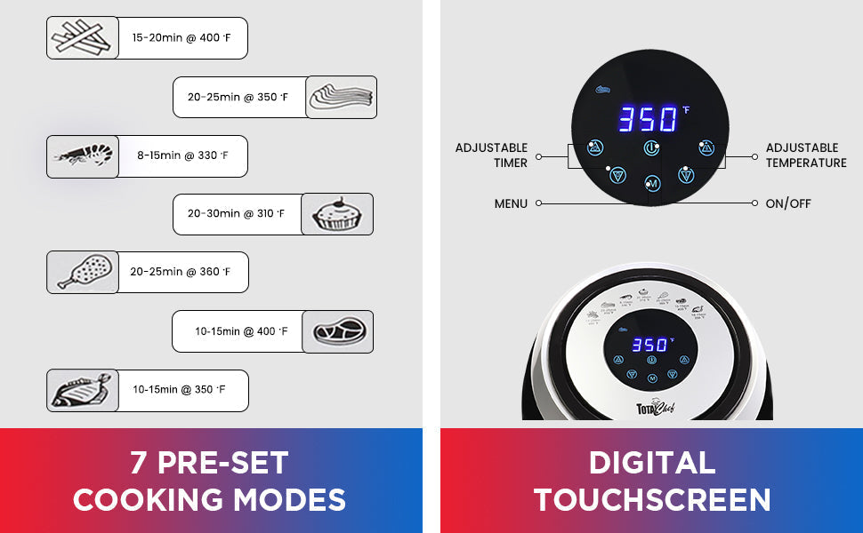 - Dual controls allow you to set temperature to 90-200 degrees and cook from 1 – 30 minutes. The simplicity helps you when following along to recipes found online or in other recipe books.